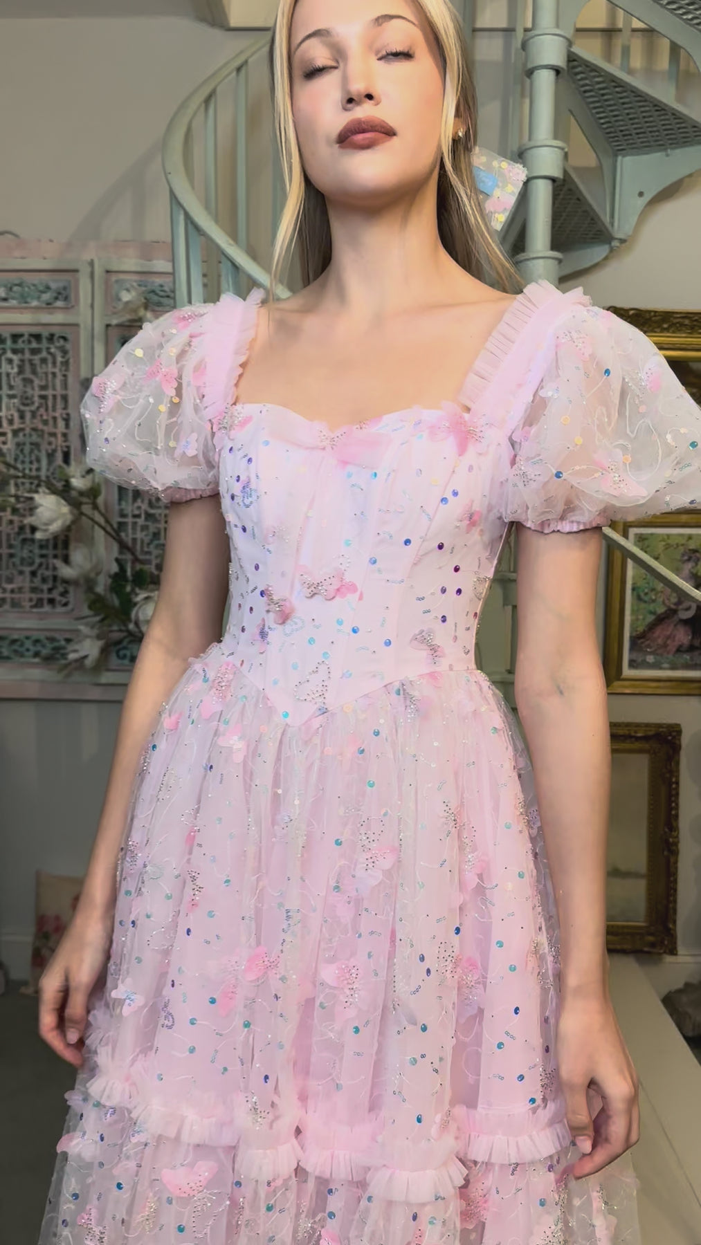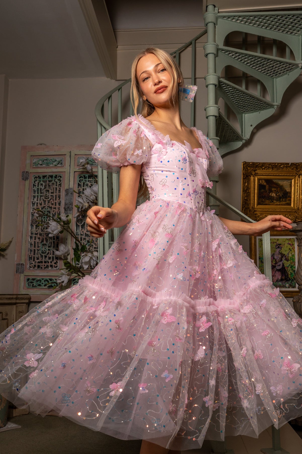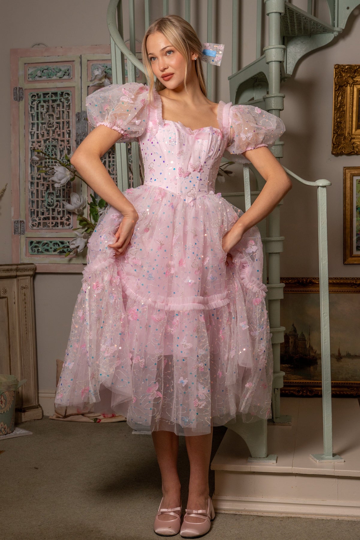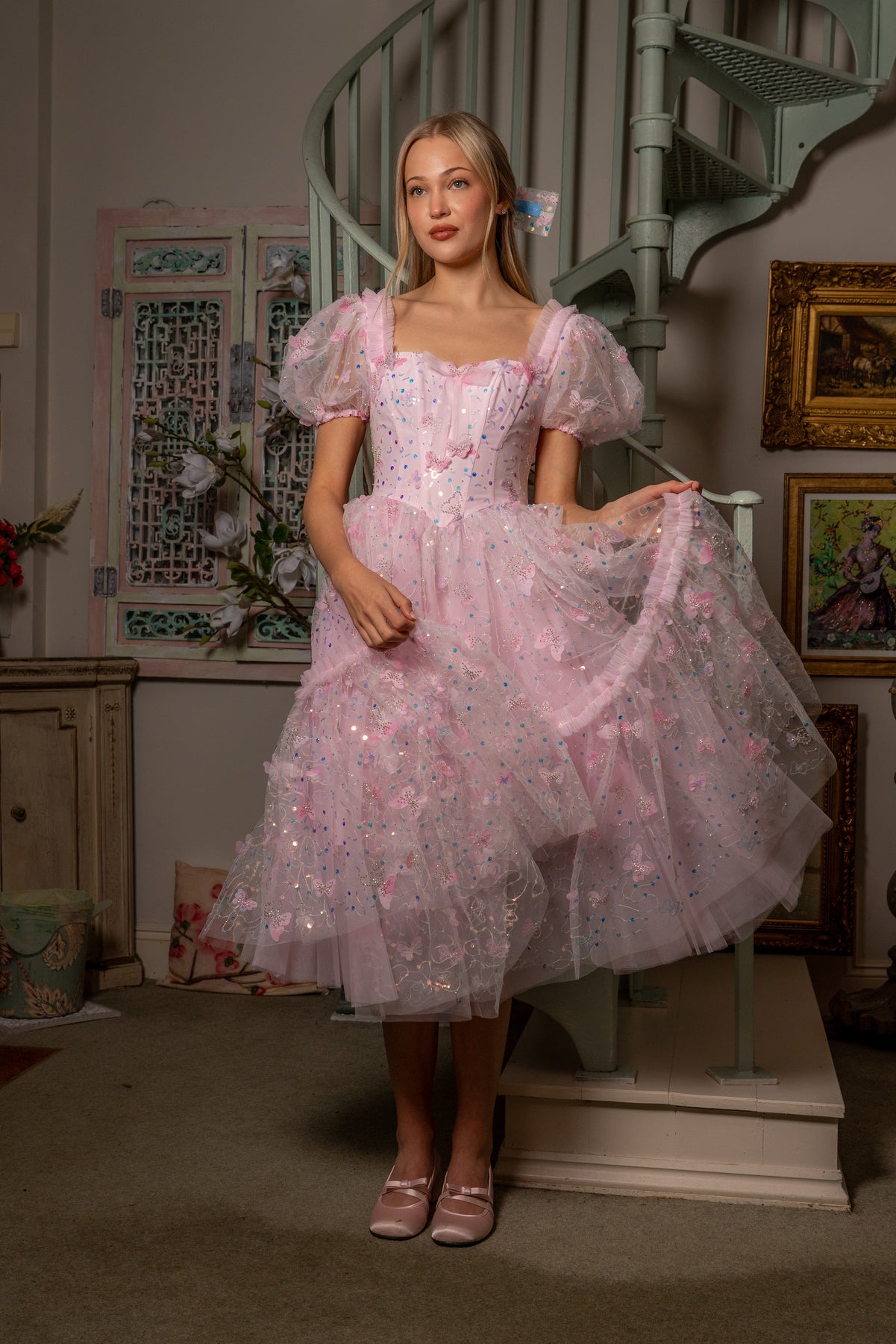 Fairy Hairstreak Midi Dress - Baby Pink - Fairy Tong