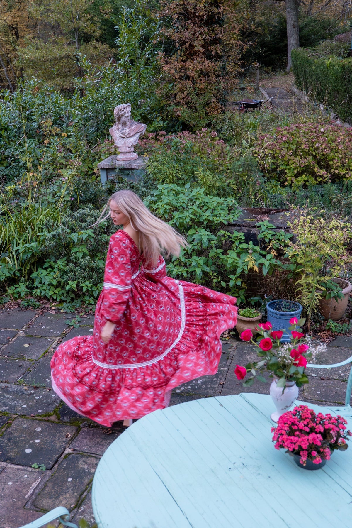 Flutter Lace Bloom Maxi Dress - Lipstick Red - Fairy Tong
