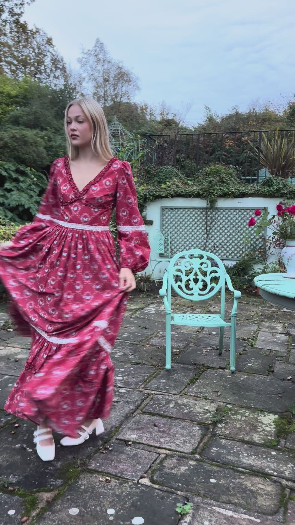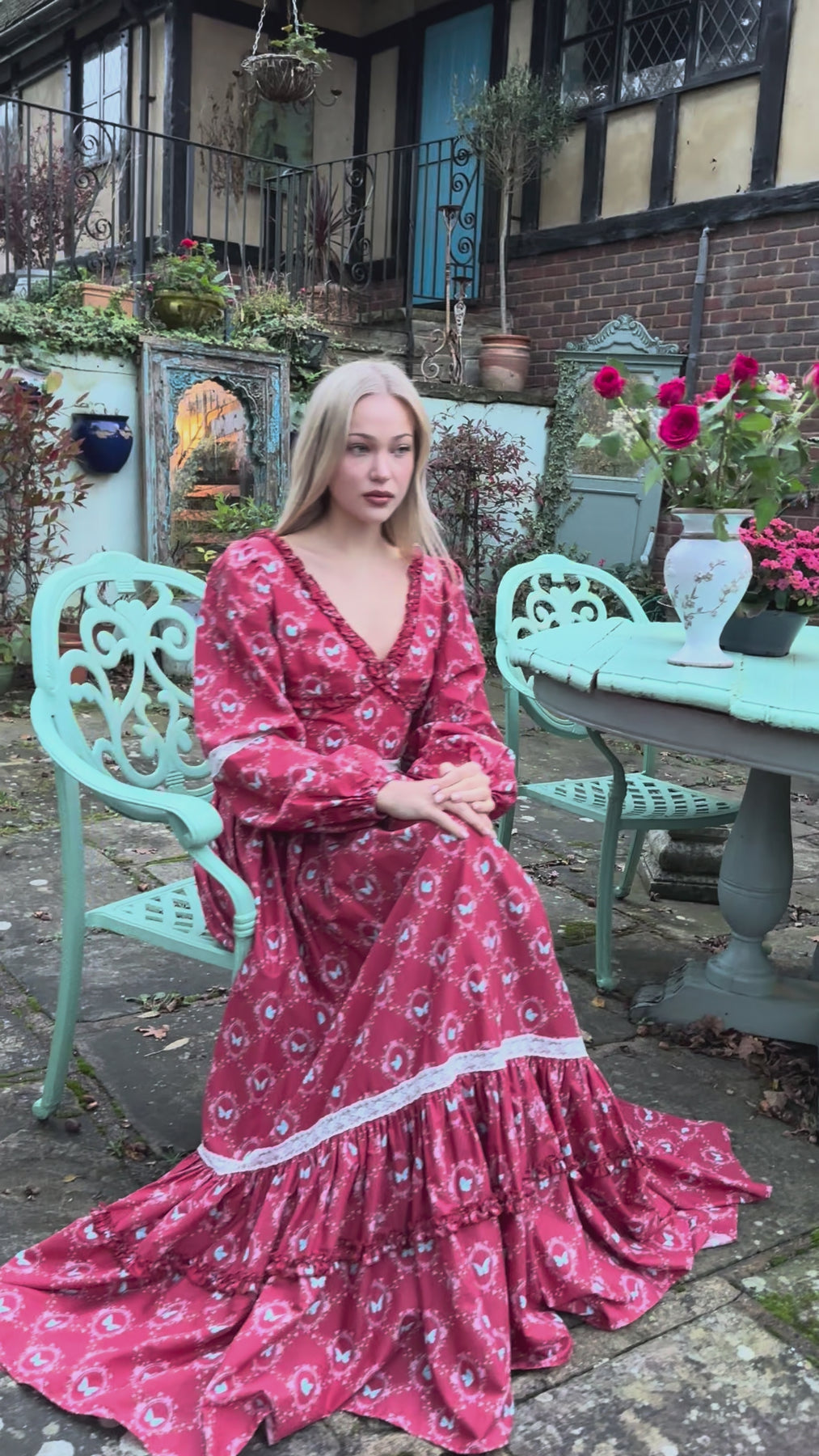 Flutter Lace Bloom Maxi Dress - Lipstick Red