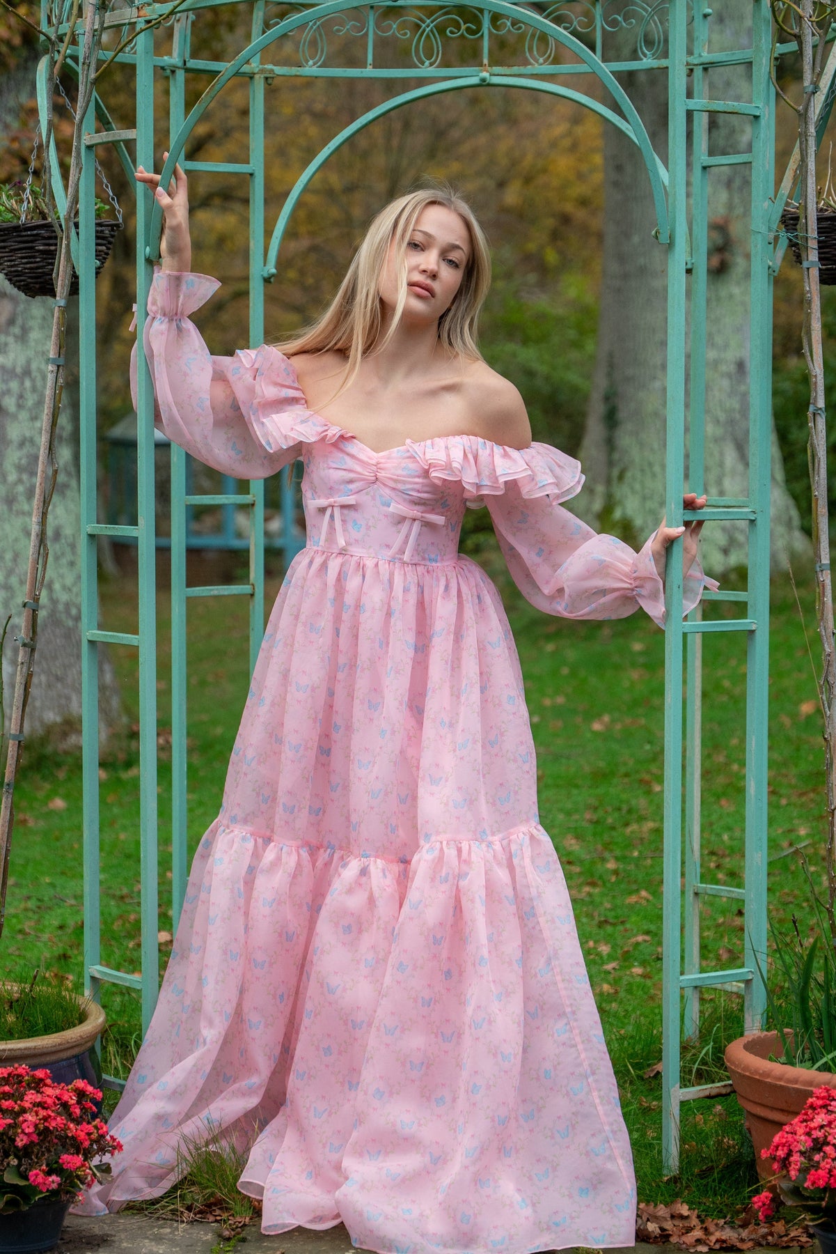 • Puff sleeves with two sequin bows